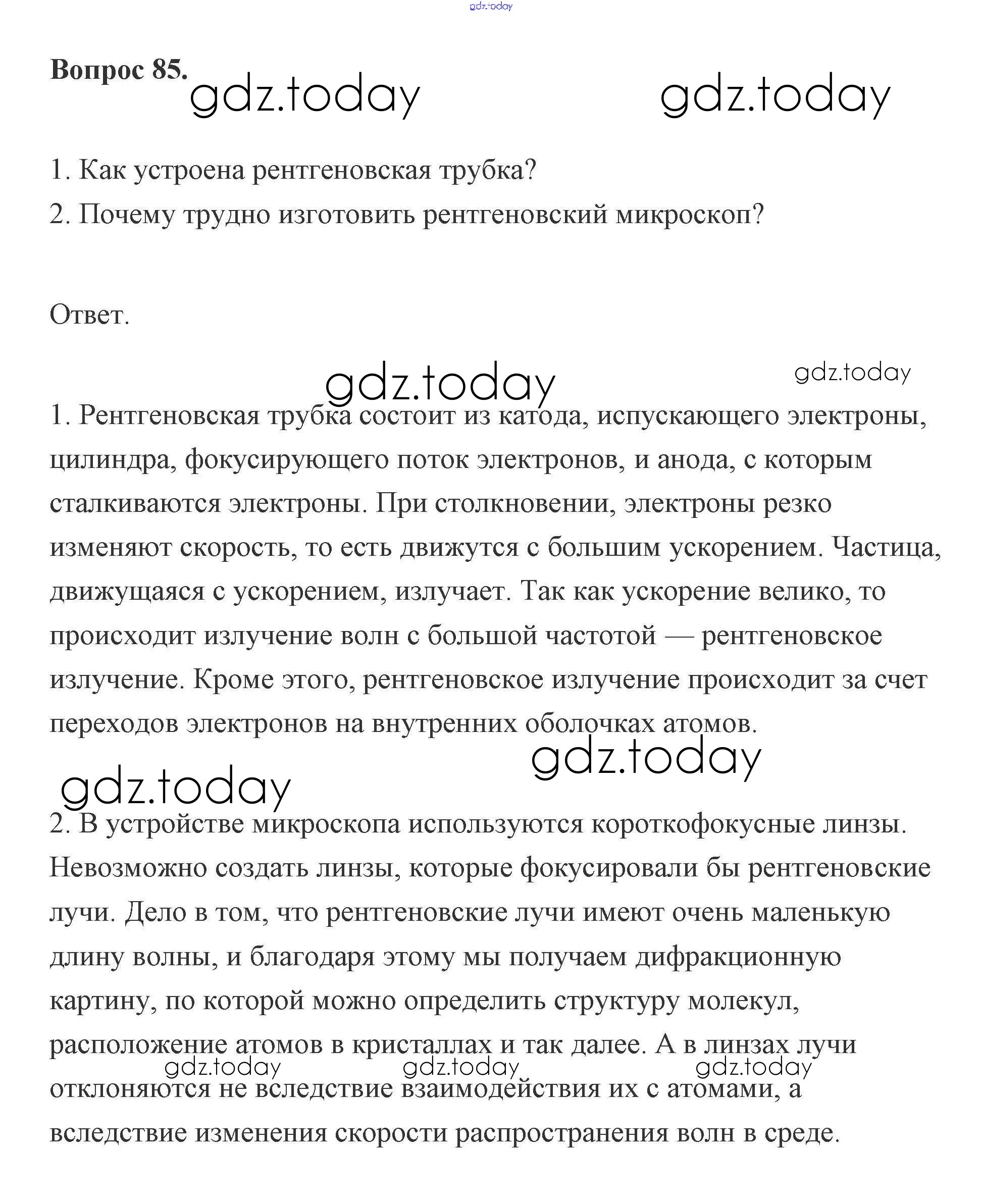 Ответы к Решение к вопросам 85 Учебнику по Физике для 11 класса Мякишев, Буховцев Базовый и углубленный уровень Просвещение 2019