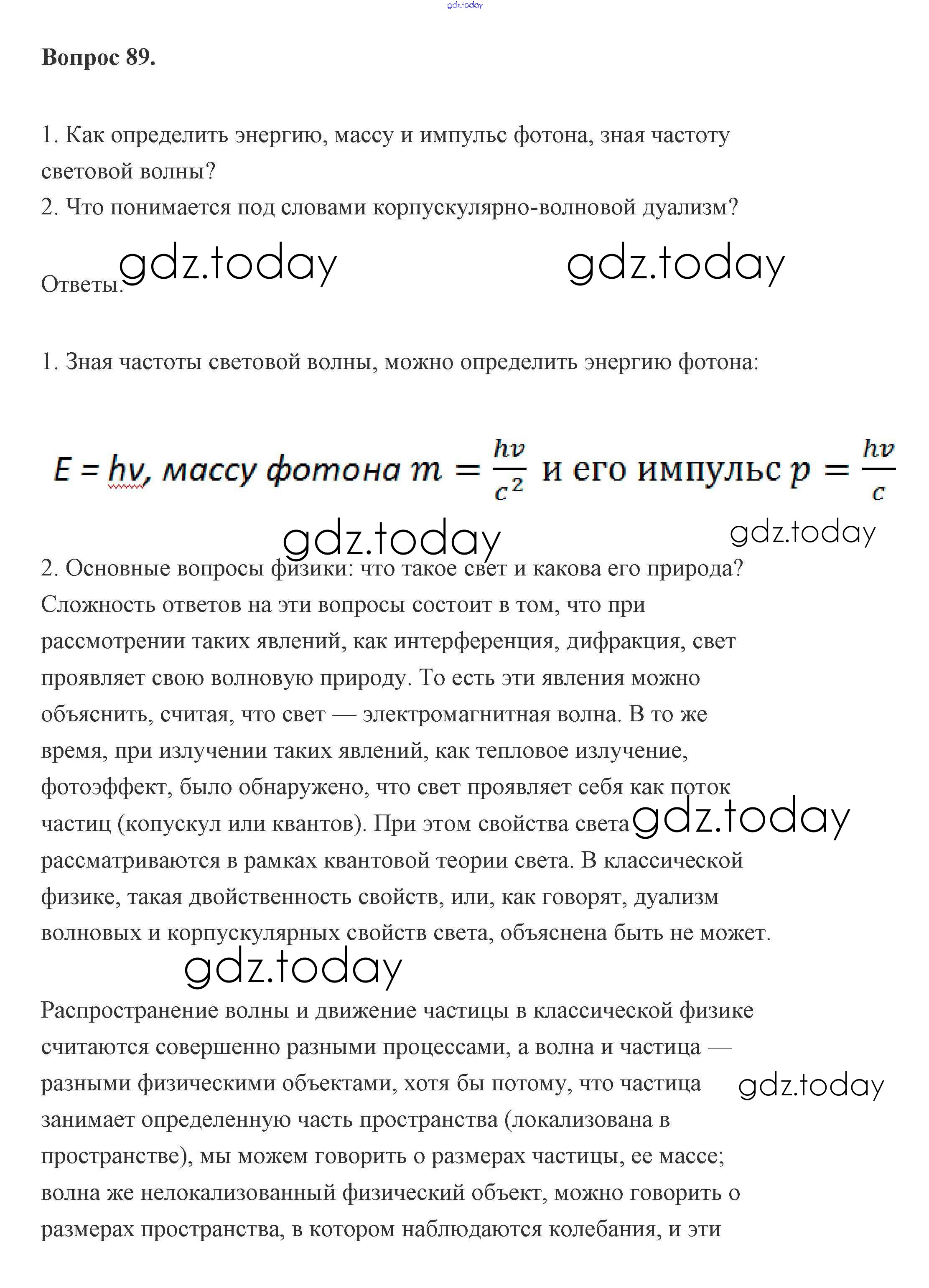 На страницах сайта gdz.today вы найдете учебный и вспомогательный материал, направленный на улучшения знаний школьной программы. ГДЗ - онлайн мир знаний Решение к вопросам 89 Учебнику по Физике для 11 класса Мякишев, Буховцев Базовый и углубленный уровень Просвещение 2019