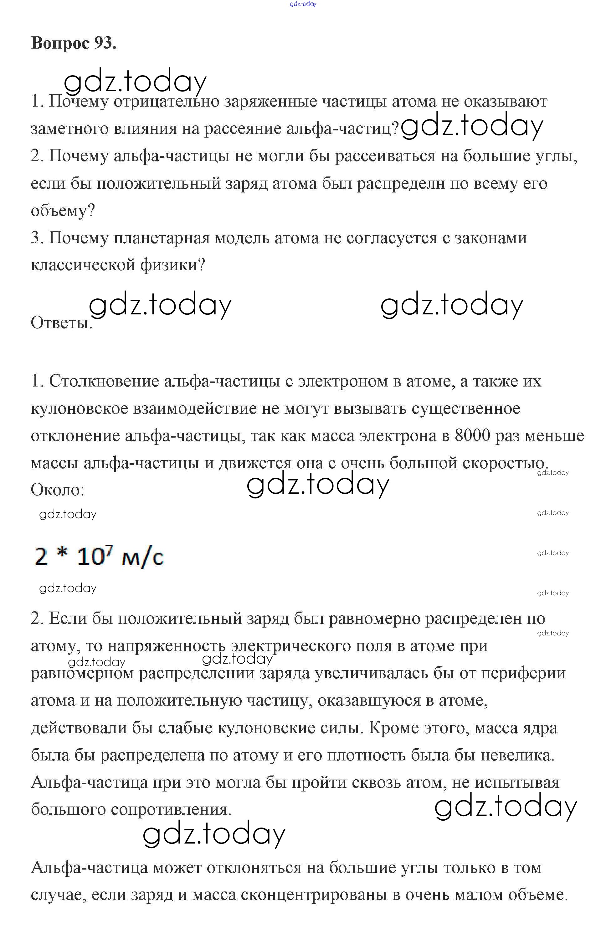 Ответы к Решение к вопросам 93 Учебнику по Физике для 11 класса Мякишев, Буховцев Базовый и углубленный уровень Просвещение 2019
