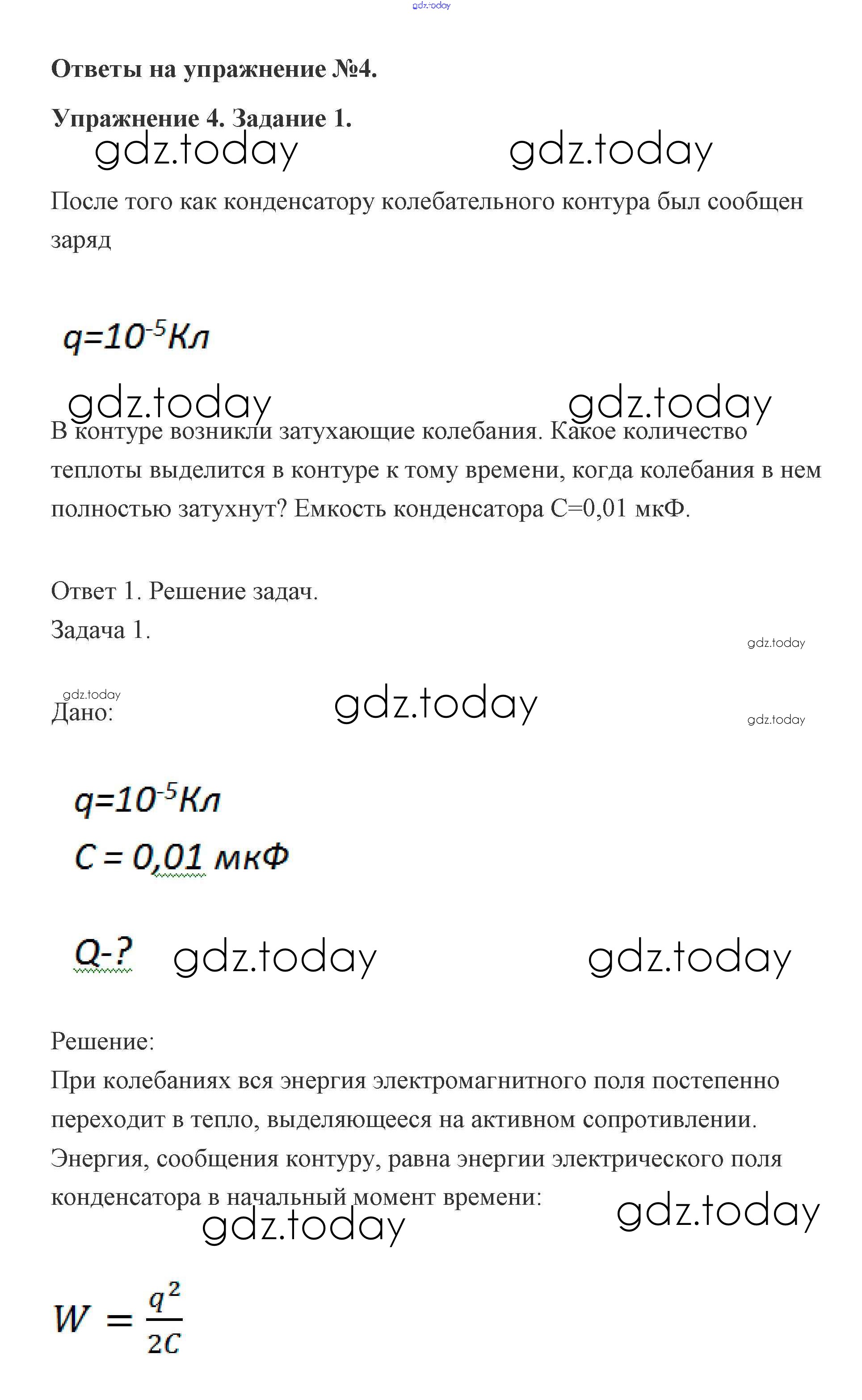 На страницах сайта gdz.today вы найдете учебный и вспомогательный материал, направленный на улучшения знаний школьной программы. ГДЗ - онлайн мир знаний Глава 4. Упражнение 4 (Задания) Решение к упражнениям 1 Учебнику по Физике для 11 класса Мякишев, Буховцев Базовый и углубленный уровень Просвещение 2019