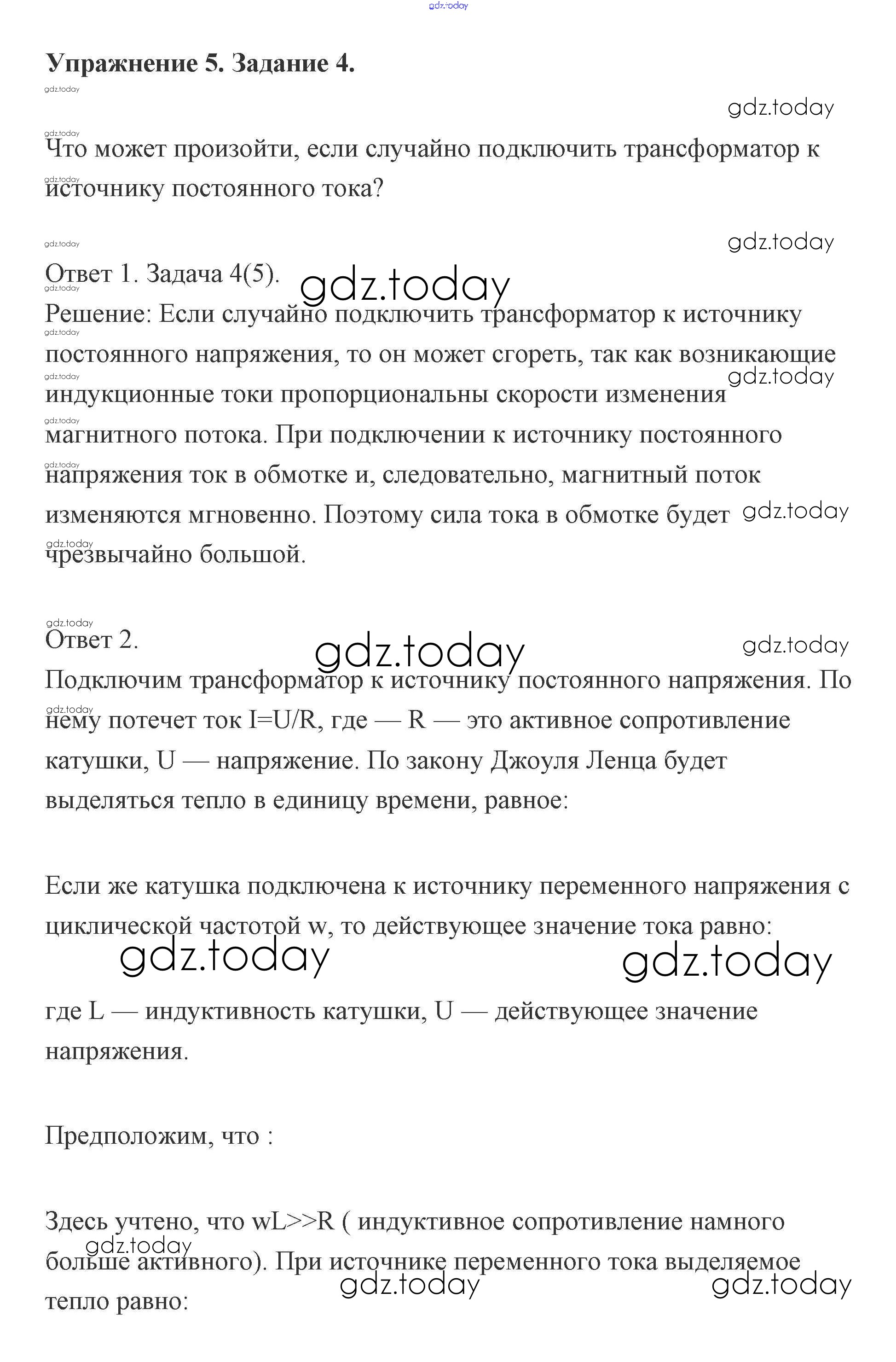 На страницах сайта gdz.today вы найдете учебный и вспомогательный материал, направленный на улучшения знаний школьной программы. ГДЗ - онлайн мир знаний Глава 5. Упражнение 5 (Задания) Решение к упражнениям 4 Учебнику по Физике для 11 класса Мякишев, Буховцев Базовый и углубленный уровень Просвещение 2019