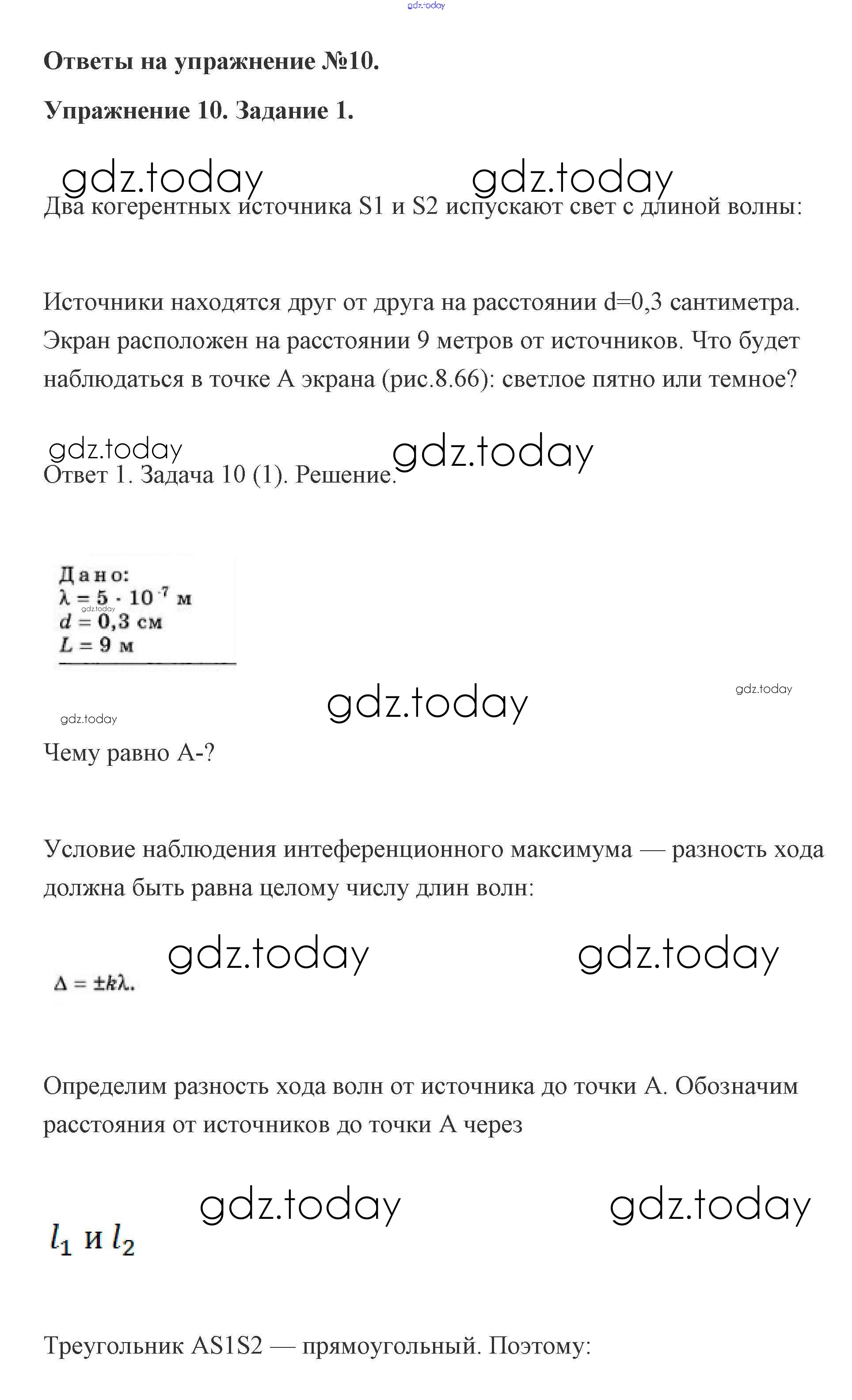 На страницах сайта gdz.today вы найдете учебный и вспомогательный материал, направленный на улучшения знаний школьной программы. ГДЗ - онлайн мир знаний Упражнение 10 (Задания) Глава 8 1 Учебнику по Физике для 11 класса Мякишев, Буховцев Базовый и углубленный уровень Просвещение 2019