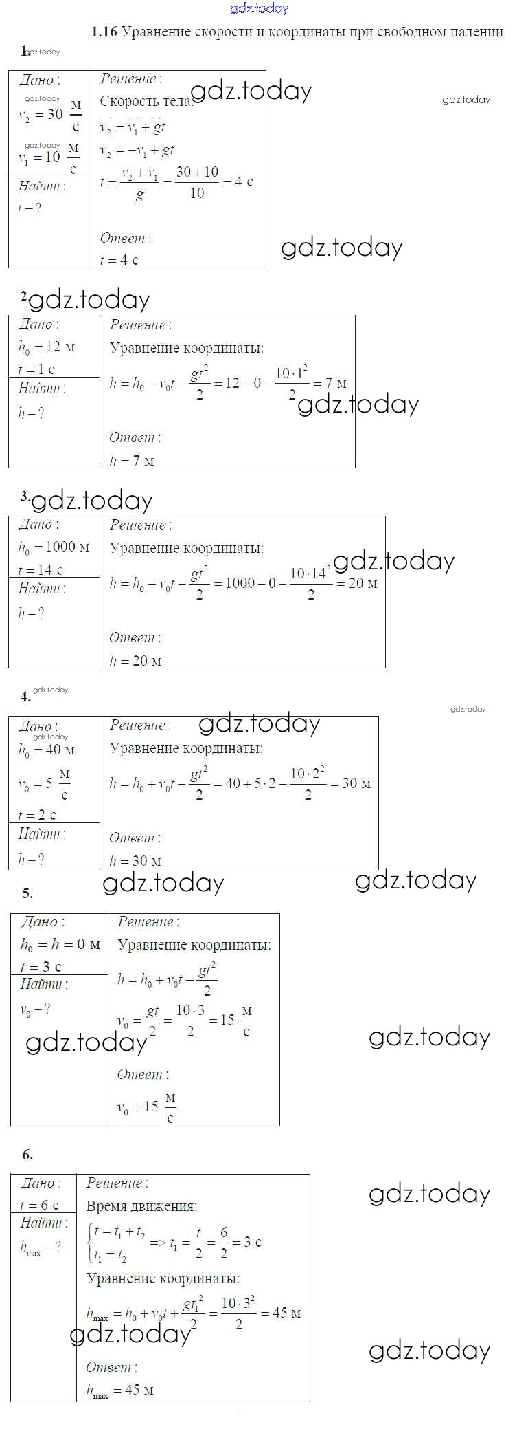 Ответы к Решение к §1 16 Сборнику задач и упражнений по Физике для 10-11 класса Громцева Экзамен УМК 2018