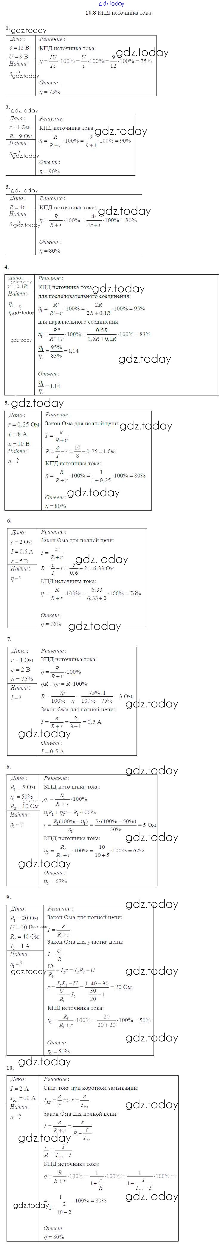 Ответы к Решение к §10 8 Сборнику задач и упражнений по Физике для 10-11 класса Громцева Экзамен УМК 2018