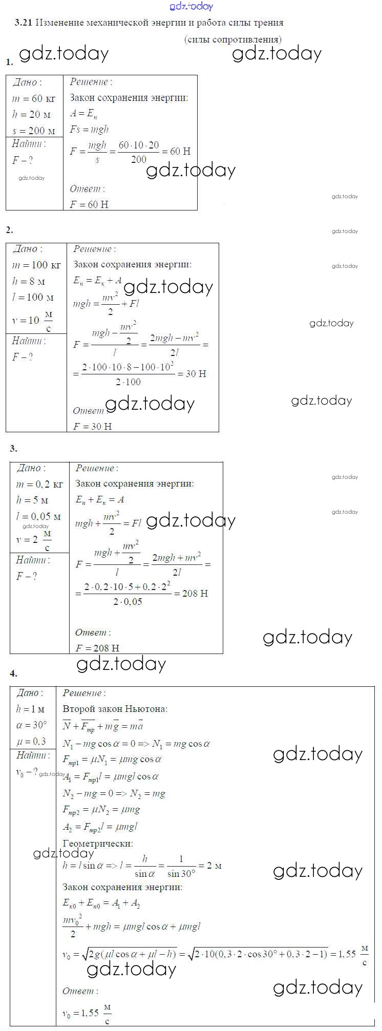 Ответы к Решение к §3 21 Сборнику задач и упражнений по Физике для 10-11 класса Громцева Экзамен УМК 2018