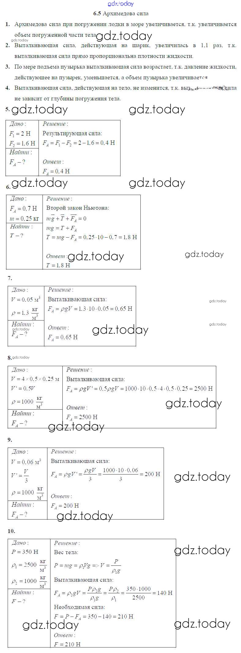 Ответы к Решение к §6 5 Сборнику задач и упражнений по Физике для 10-11 класса Громцева Экзамен УМК 2018