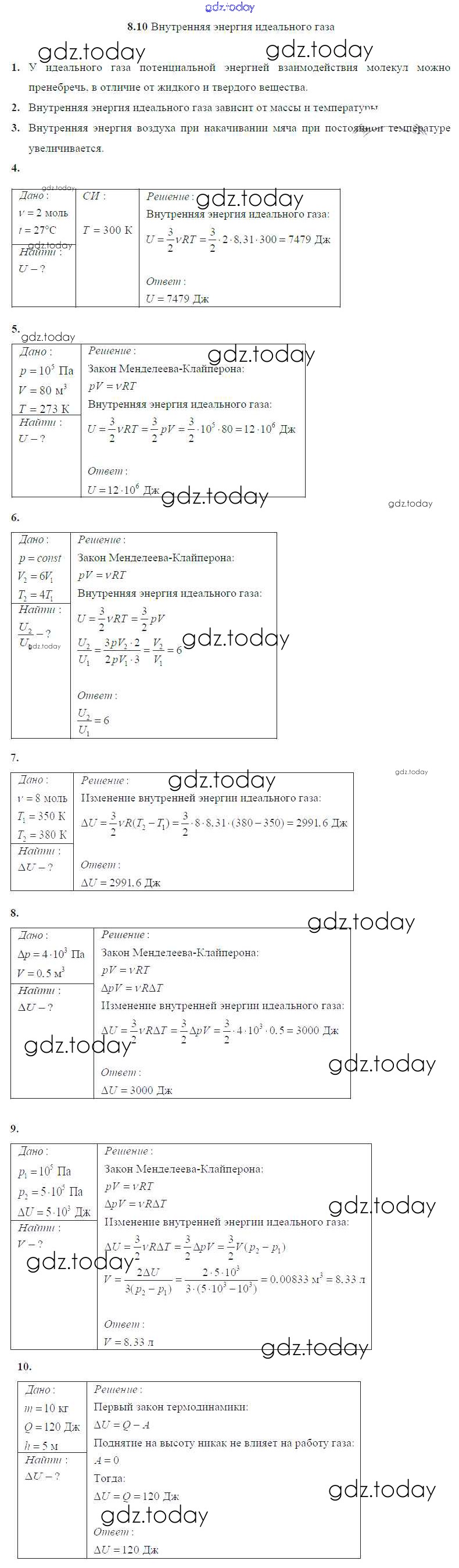 Ответы к Решение к §8 10 Сборнику задач и упражнений по Физике для 10-11 класса Громцева Экзамен УМК 2018
