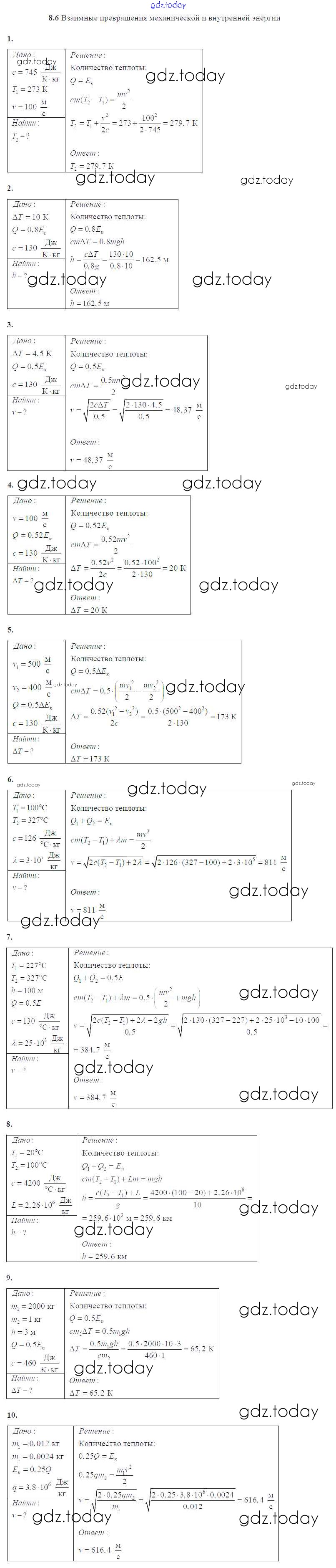 Ответы к Решение к §8 6 Сборнику задач и упражнений по Физике для 10-11 класса Громцева Экзамен УМК 2018