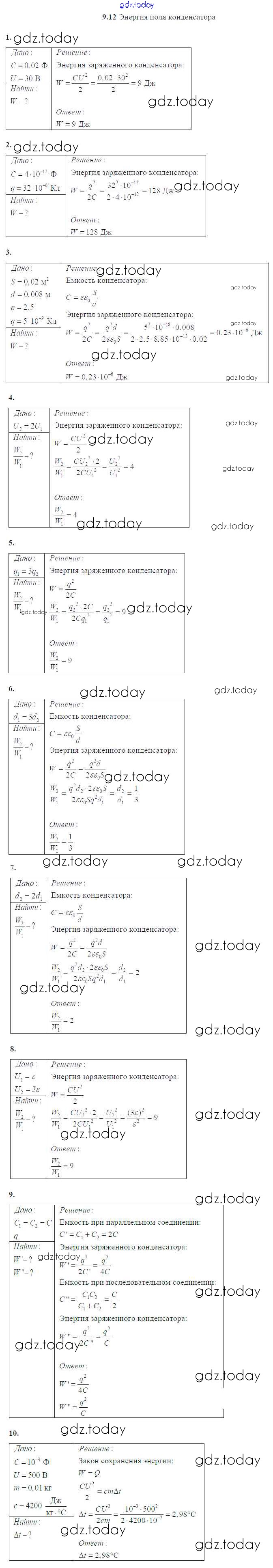 Ответы к Решение к §9 12 Сборнику задач и упражнений по Физике для 10-11 класса Громцева Экзамен УМК 2018