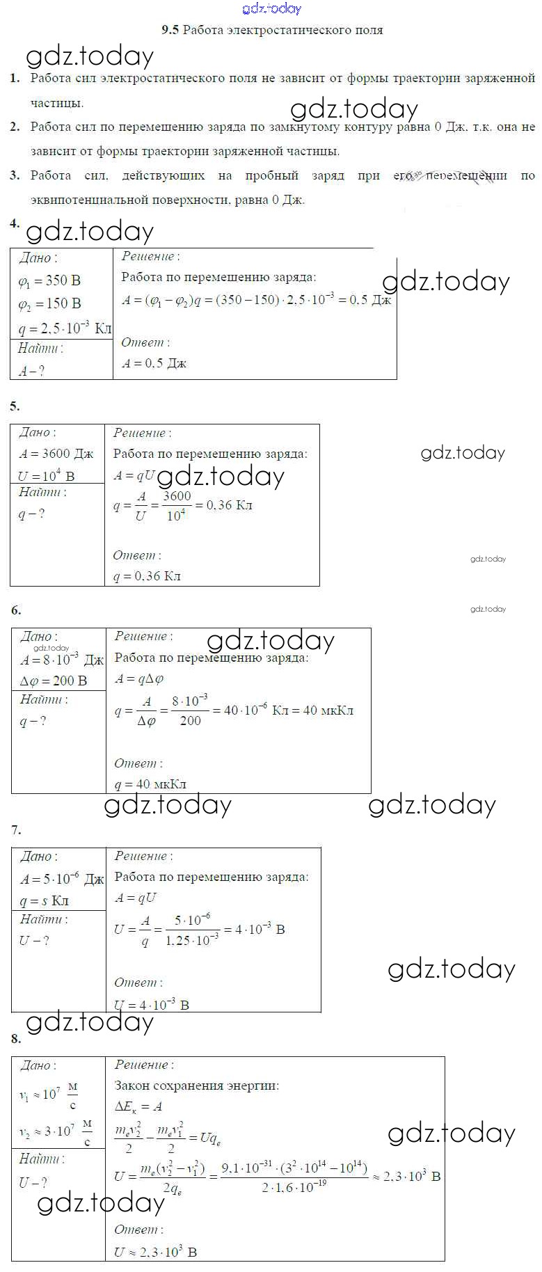 Ответы к Решение к §9 5 Сборнику задач и упражнений по Физике для 10-11 класса Громцева Экзамен УМК 2018