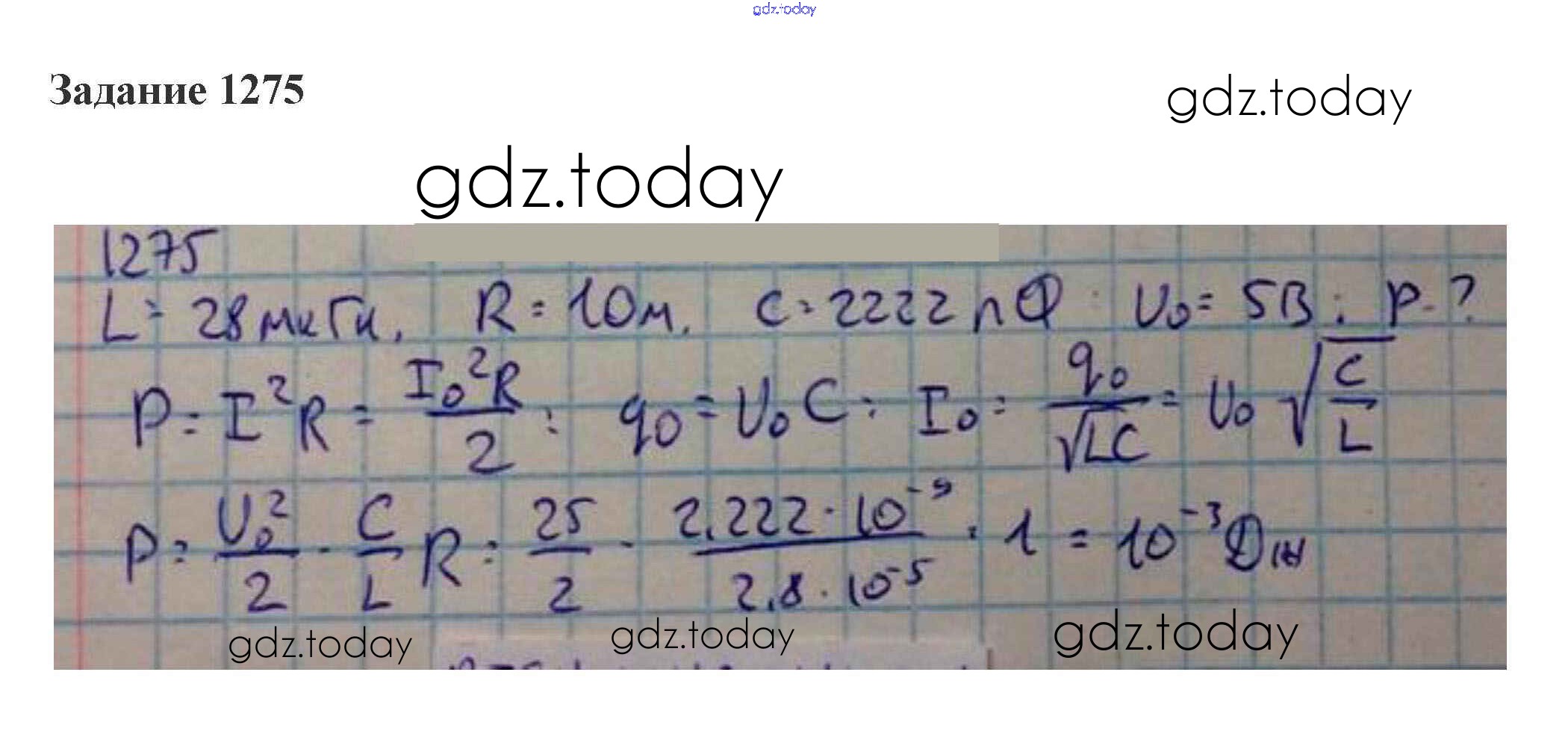На страницах сайта gdz.today вы найдете учебный и вспомогательный материал, направленный на улучшения знаний школьной программы. ГДЗ - онлайн мир знаний 52. Свободные электрические колебания. Колебательный контур Решение к теме "Электрические колебания" 1275 Сборнику задач по Физике для 10-11 класса Степанова Просвещение 2015