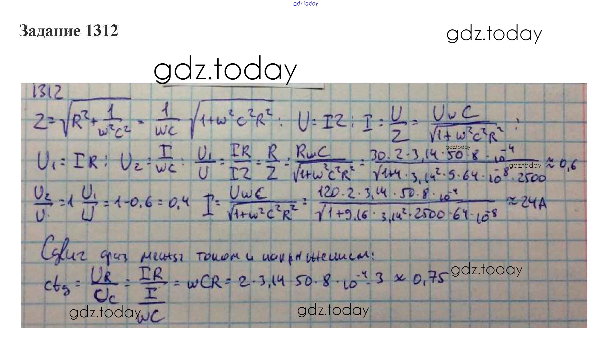 На страницах сайта gdz.today вы найдете учебный и вспомогательный материал, направленный на улучшения знаний школьной программы. ГДЗ - онлайн мир знаний 54. Активное и реактивное сопротивление. Электрические цепи переменного напряжения Решение к теме "Электрические колебания" 1312 Сборнику задач по Физике для 10-11 класса Степанова Просвещение 2015