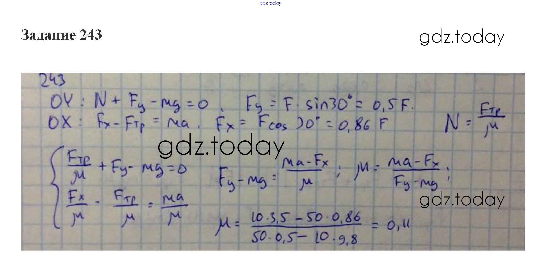 На страницах сайта gdz.today вы найдете учебный и вспомогательный материал, направленный на улучшения знаний школьной программы. ГДЗ - онлайн мир знаний 13. Движение тел под действием силы трения Решение к теме "Основы динамики" 243 Сборнику задач по Физике для 10-11 класса Степанова Просвещение 2015