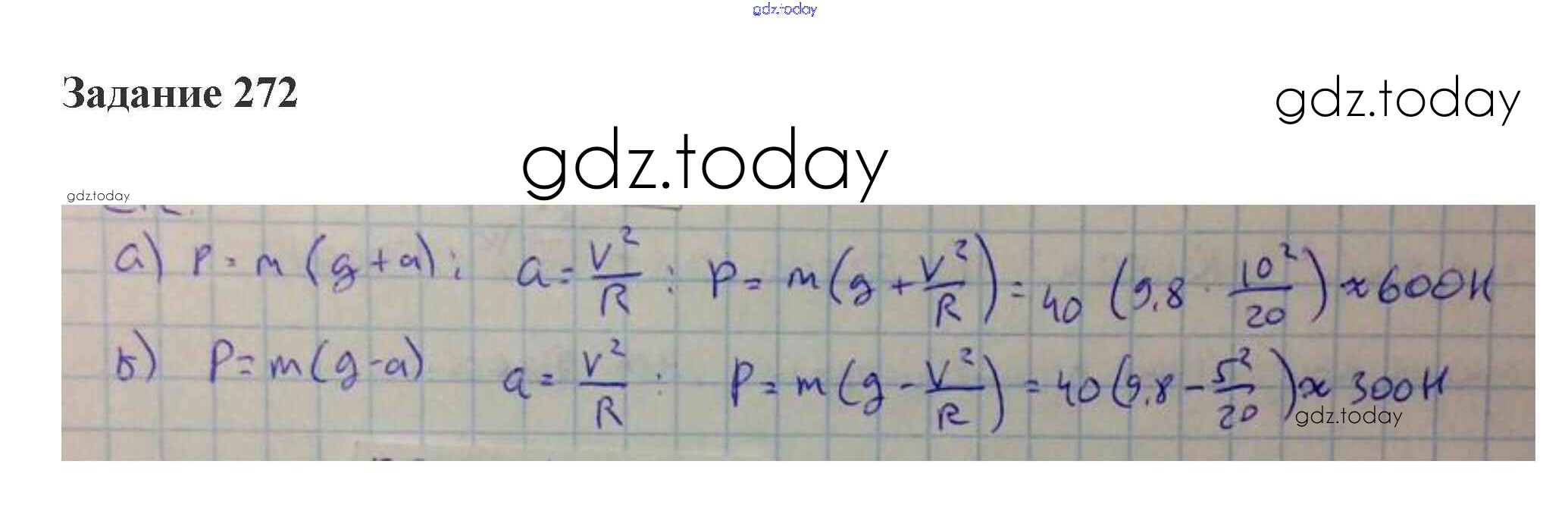 На страницах сайта gdz.today вы найдете учебный и вспомогательный материал, направленный на улучшения знаний школьной программы. ГДЗ - онлайн мир знаний 15. Вес тела. Невесомость Решение к теме "Основы динамики" 272 Сборнику задач по Физике для 10-11 класса Степанова Просвещение 2015