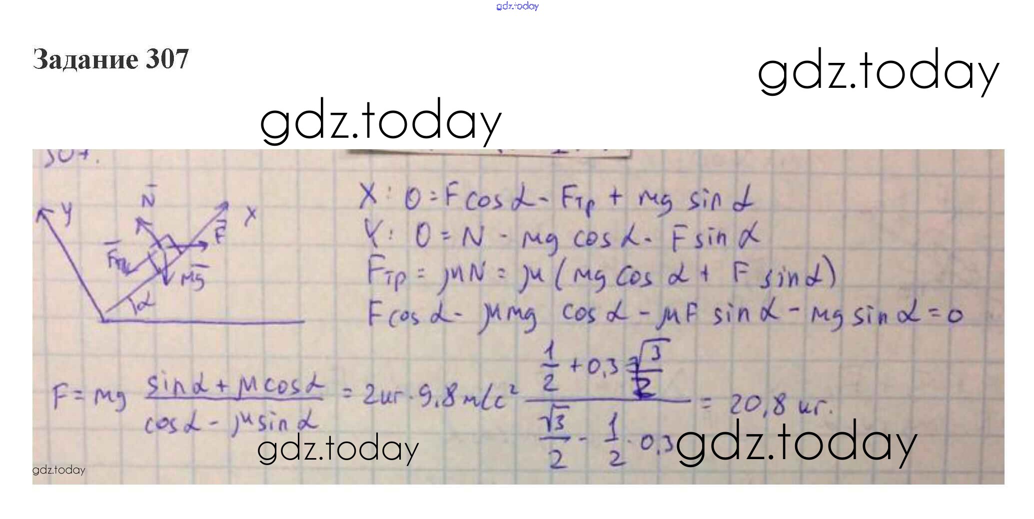 Ответы к 16. Движение тел под действием нескольких сил. Движение в горизонтальном и вертикальном направлении Решение к теме "Основы динамики" 307 Сборнику задач по Физике для 10-11 класса Степанова Просвещение 2015