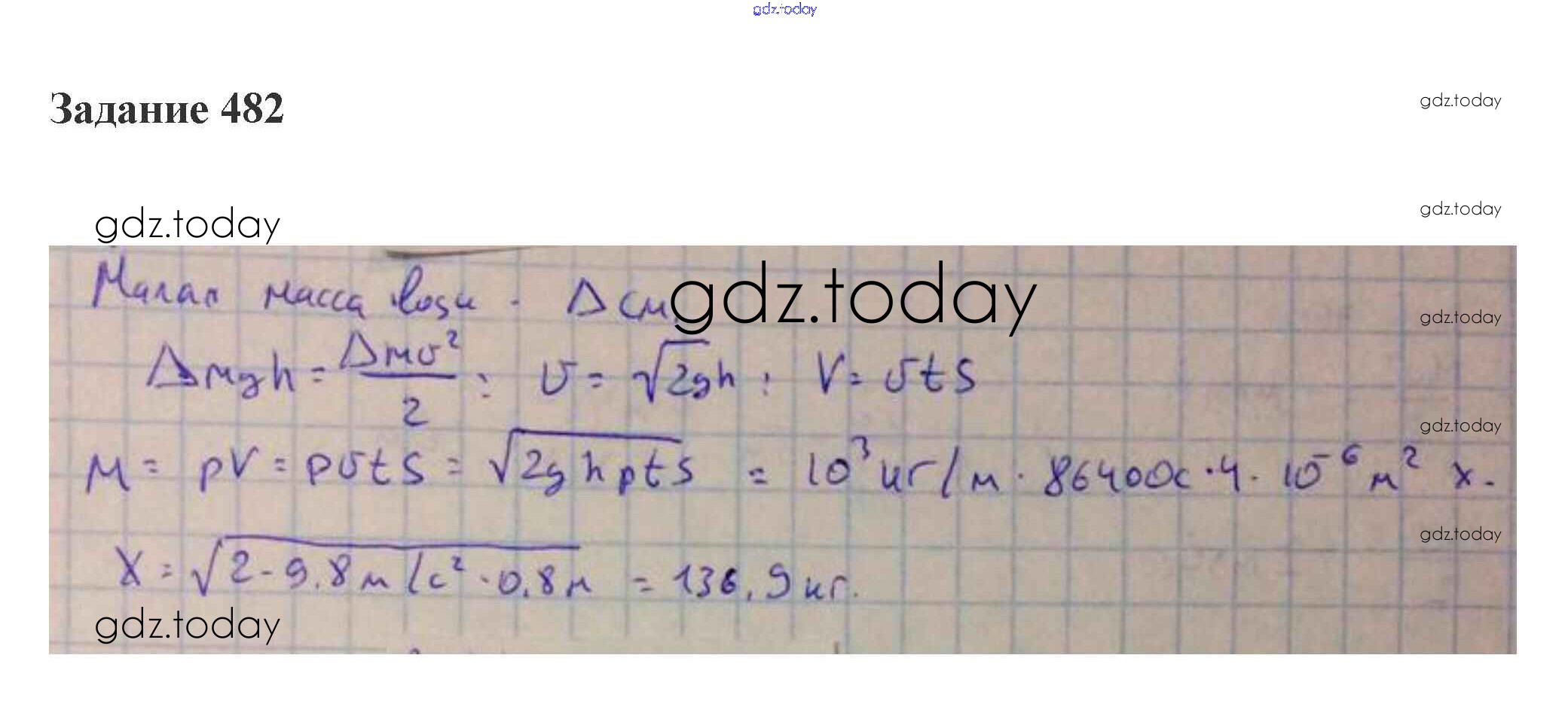 На страницах сайта gdz.today вы найдете учебный и вспомогательный материал, направленный на улучшения знаний школьной программы. ГДЗ - онлайн мир знаний 22. Движение жидкостей и газов Решение к теме "Законы сохранения" 482 Сборнику задач по Физике для 10-11 класса Степанова Просвещение 2015