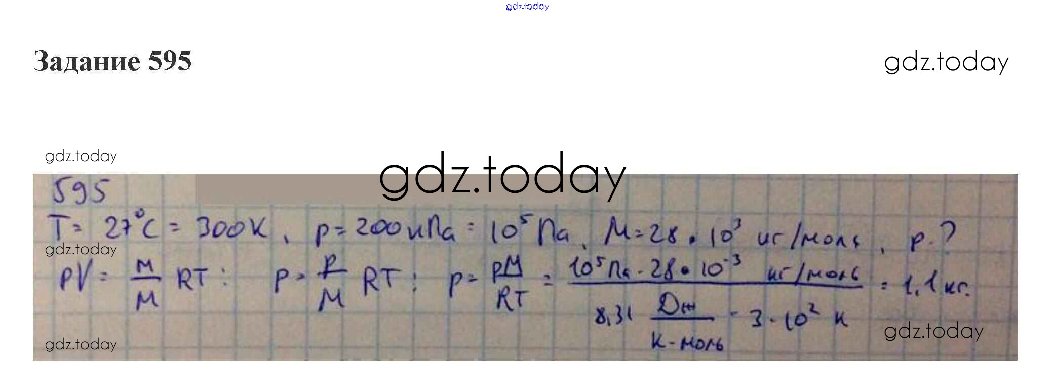 На страницах сайта gdz.today вы найдете учебный и вспомогательный материал, направленный на улучшения знаний школьной программы. ГДЗ - онлайн мир знаний 27. Уравнение состояния идеального газа Решение к теме "Свойства газов" 595 Сборнику задач по Физике для 10-11 класса Степанова Просвещение 2015
