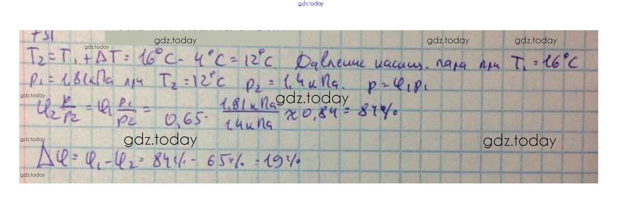 Ответы к 32. Реальные газы. Насыщенный пар. Влажность воздуха Решение к теме "Термодинамика" 731 Сборнику задач по Физике для 10-11 класса Степанова Просвещение 2015