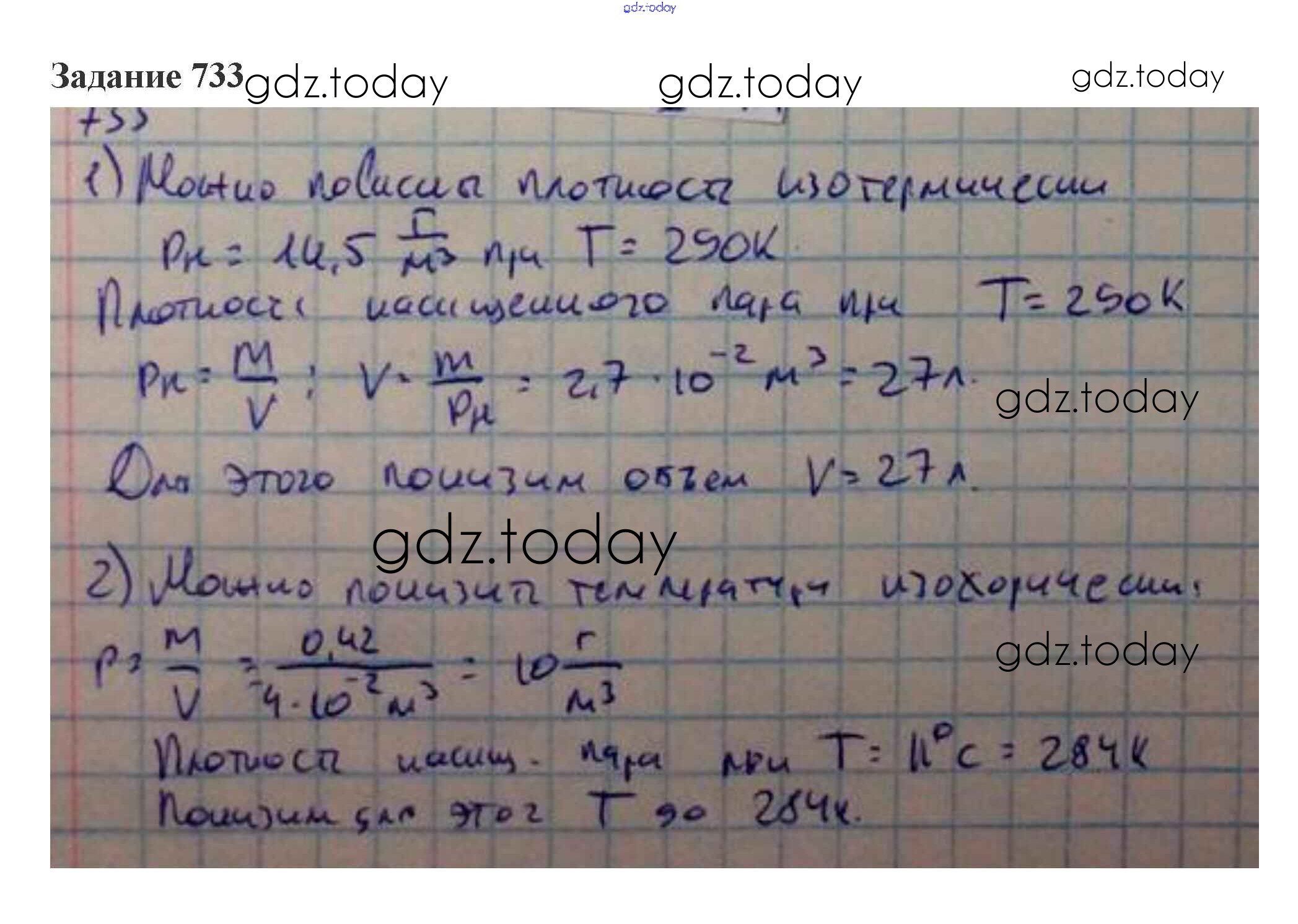 Ответы к 32. Реальные газы. Насыщенный пар. Влажность воздуха Решение к теме "Термодинамика" 733 Сборнику задач по Физике для 10-11 класса Степанова Просвещение 2015