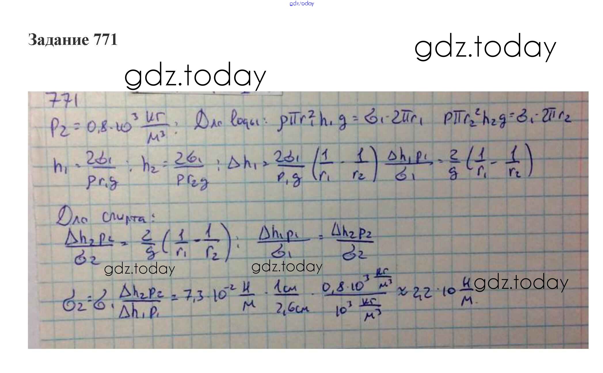 Ответы к 33. Поверхностное натяжение. Смачивание и капиллярность Решение к теме "Свойства жидкостей" 771 Сборнику задач по Физике для 10-11 класса Степанова Просвещение 2015