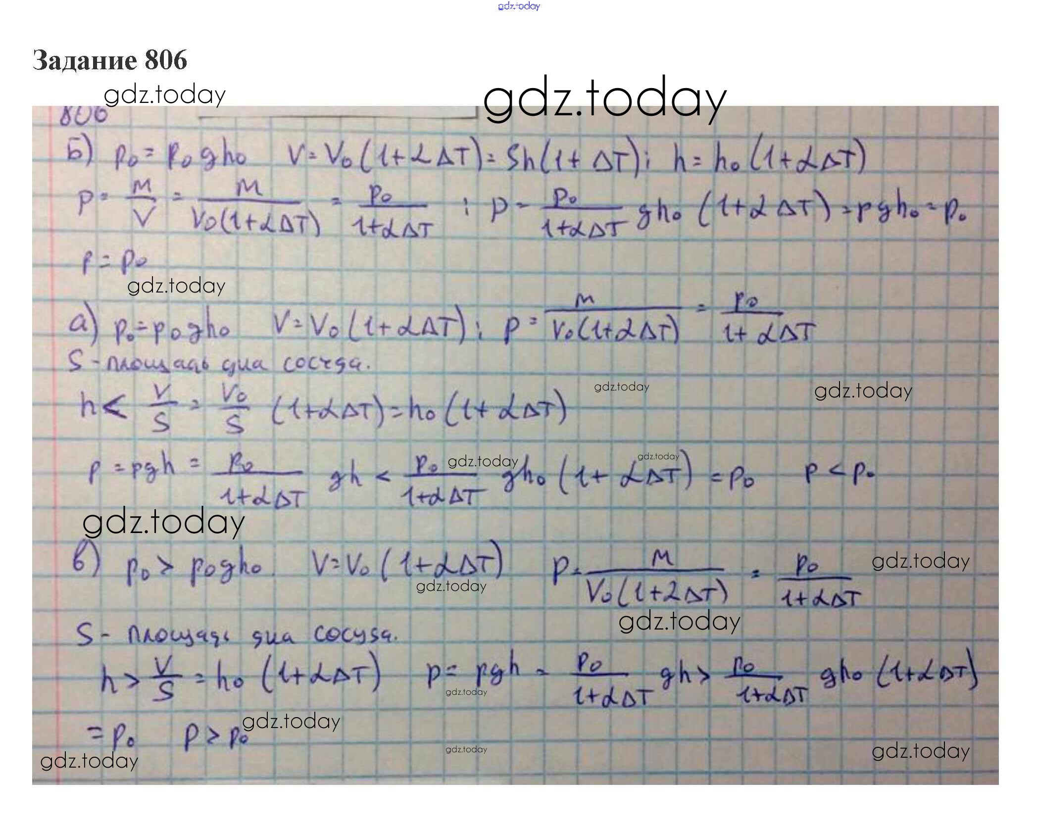 На страницах сайта gdz.today вы найдете учебный и вспомогательный материал, направленный на улучшения знаний школьной программы. ГДЗ - онлайн мир знаний 34. Тепловое расширение твердых тел и жидкостей Решение к теме "Свойства жидкостей" 806 Сборнику задач по Физике для 10-11 класса Степанова Просвещение 2015