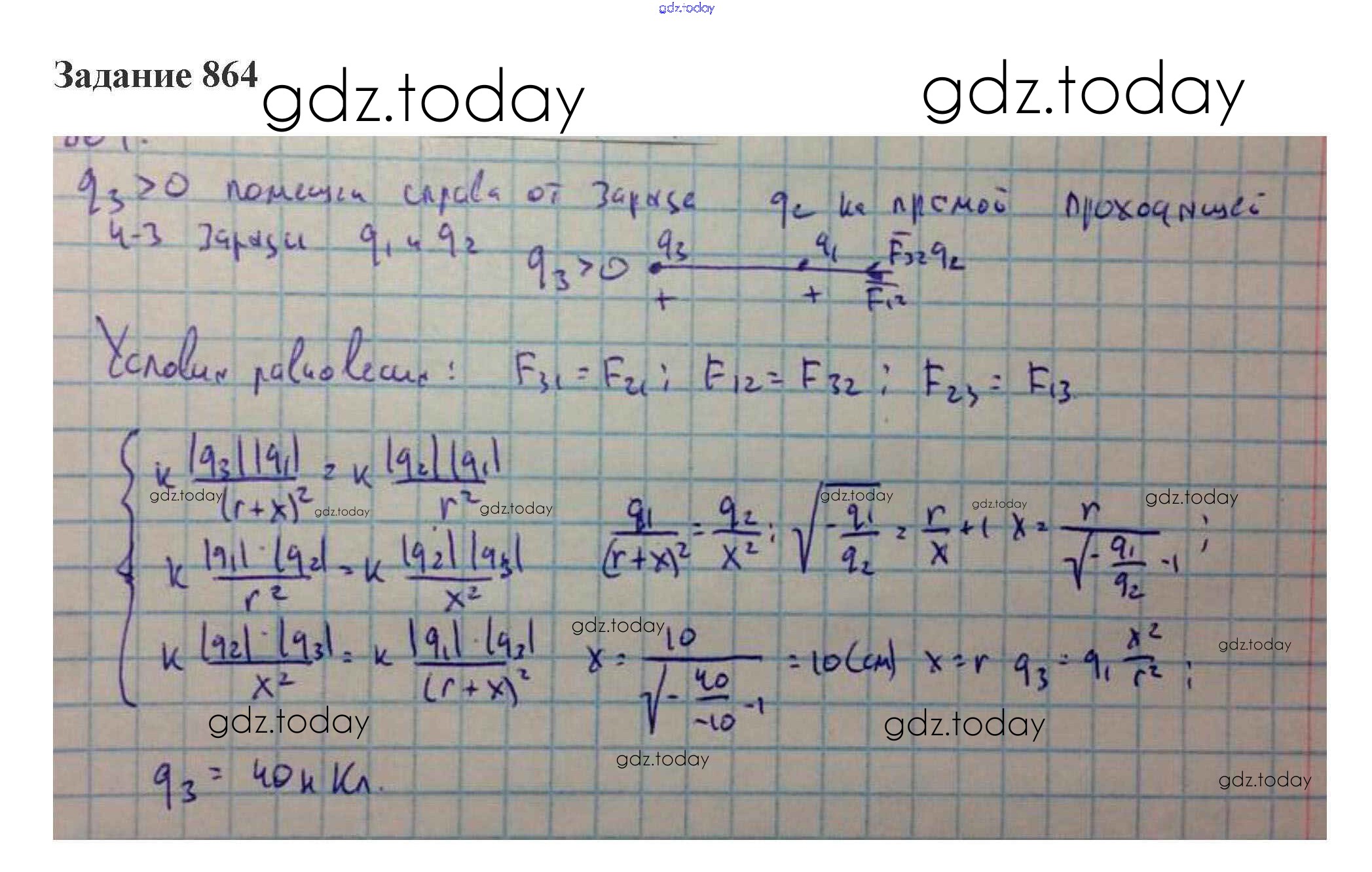 Ответы к 36. Электростатика Решение к теме "Электродинамика. Электростатическое поле" 864 Сборнику задач по Физике для 10-11 класса Степанова Просвещение 2015