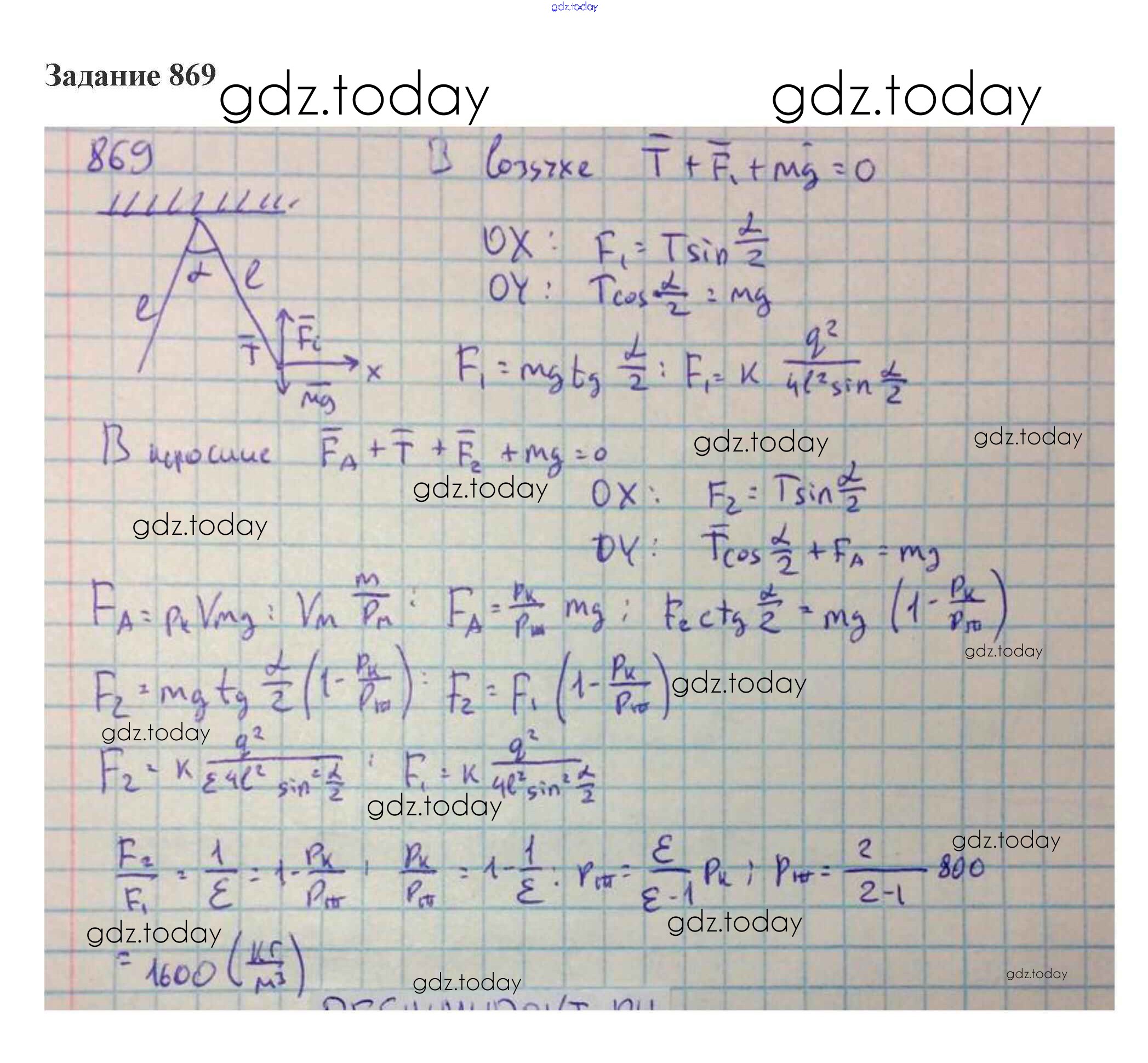 Ответы к 36. Электростатика Решение к теме "Электродинамика. Электростатическое поле" 869 Сборнику задач по Физике для 10-11 класса Степанова Просвещение 2015