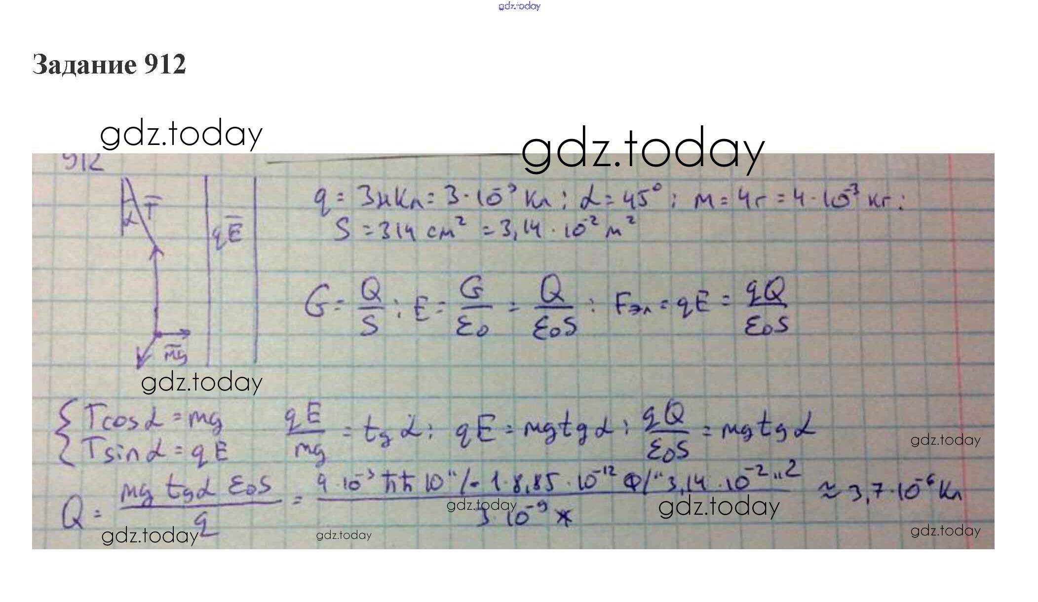 Ответы к 37. Электрическое поле. Напряженность поля. Потенциал. Разность потенциалов Решение к теме "Электродинамика. Электростатическое поле" 912 Сборнику задач по Физике для 10-11 класса Степанова Просвещение 2015