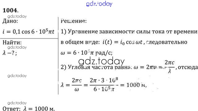 На страницах сайта gdz.today вы найдете учебный и вспомогательный материал, направленный на улучшения знаний школьной программы. ГДЗ - онлайн мир знаний Задачи 1004 Задачнику по Физике для 10-11 класса Рымкевич Дрофа УМК 2013