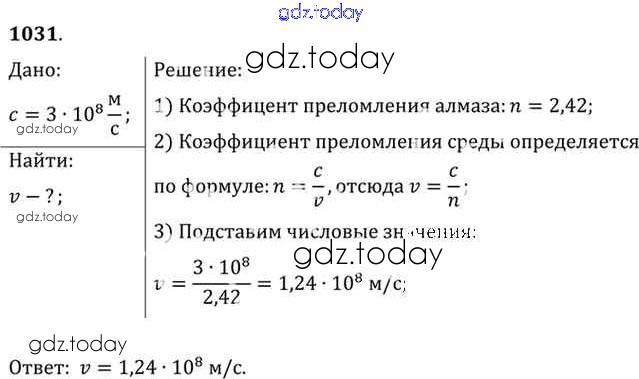 На страницах сайта gdz.today вы найдете учебный и вспомогательный материал, направленный на улучшения знаний школьной программы. ГДЗ - онлайн мир знаний Задачи 1031 Задачнику по Физике для 10-11 класса Рымкевич Дрофа УМК 2013
