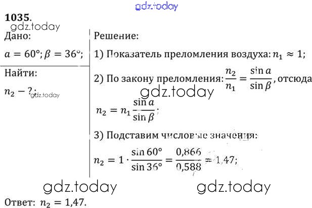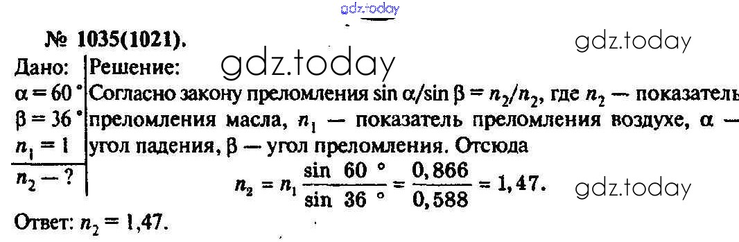 На страницах сайта gdz.today вы найдете учебный и вспомогательный материал, направленный на улучшения знаний школьной программы. ГДЗ - онлайн мир знаний Задачи 1035 Задачнику по Физике для 10-11 класса Рымкевич Дрофа УМК 2013