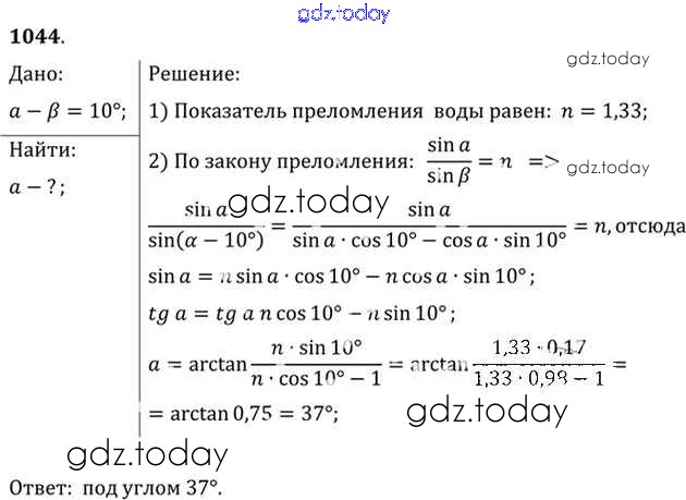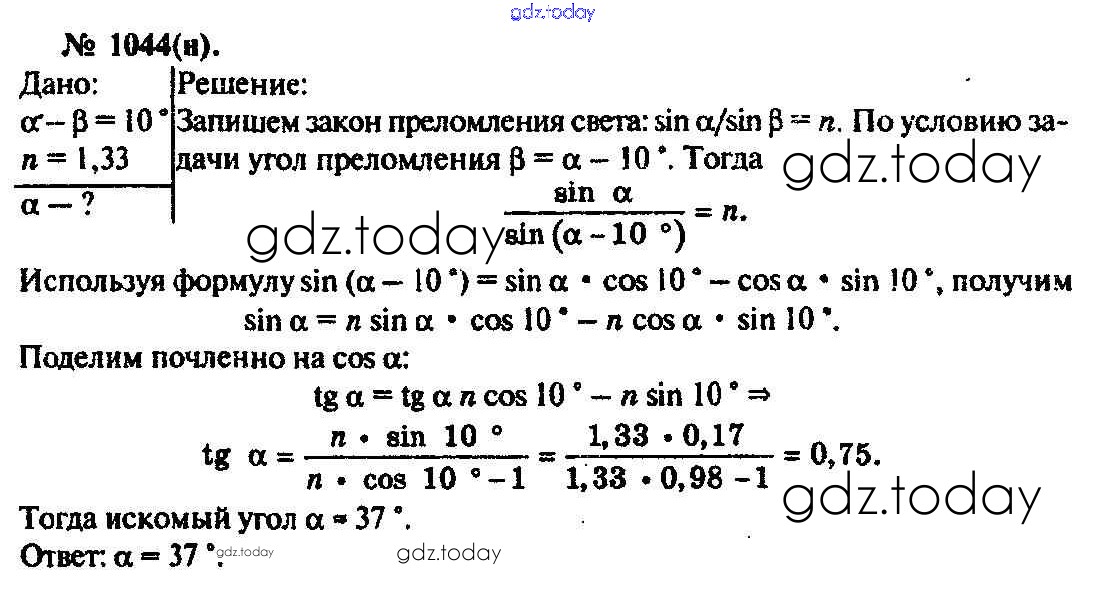 На страницах сайта gdz.today вы найдете учебный и вспомогательный материал, направленный на улучшения знаний школьной программы. ГДЗ - онлайн мир знаний Задачи 1044 Задачнику по Физике для 10-11 класса Рымкевич Дрофа УМК 2013