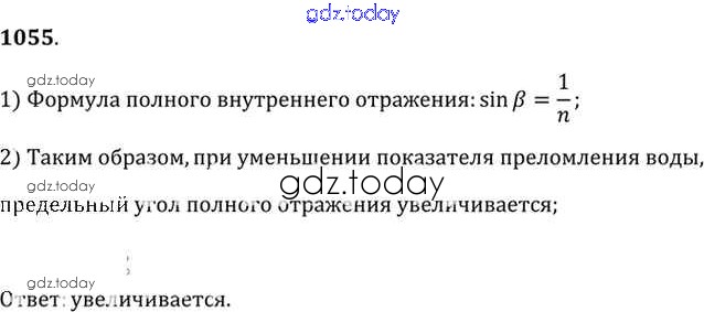 На страницах сайта gdz.today вы найдете учебный и вспомогательный материал, направленный на улучшения знаний школьной программы. ГДЗ - онлайн мир знаний Задачи 1055 Задачнику по Физике для 10-11 класса Рымкевич Дрофа УМК 2013