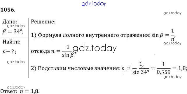 На страницах сайта gdz.today вы найдете учебный и вспомогательный материал, направленный на улучшения знаний школьной программы. ГДЗ - онлайн мир знаний Задачи 1056 Задачнику по Физике для 10-11 класса Рымкевич Дрофа УМК 2013