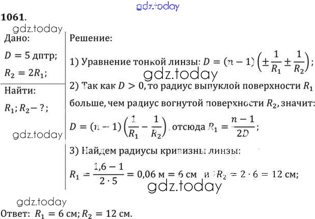 На страницах сайта gdz.today вы найдете учебный и вспомогательный материал, направленный на улучшения знаний школьной программы. ГДЗ - онлайн мир знаний Задачи 1061 Задачнику по Физике для 10-11 класса Рымкевич Дрофа УМК 2013