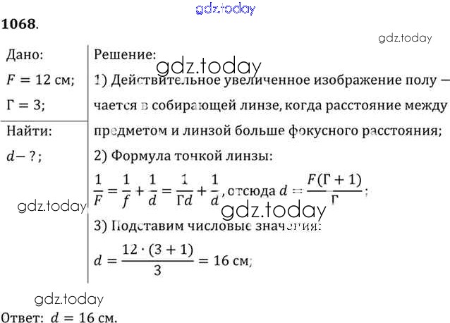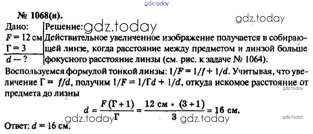 На страницах сайта gdz.today вы найдете учебный и вспомогательный материал, направленный на улучшения знаний школьной программы. ГДЗ - онлайн мир знаний Задачи 1068 Задачнику по Физике для 10-11 класса Рымкевич Дрофа УМК 2013