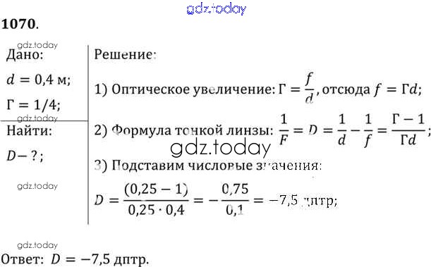 На страницах сайта gdz.today вы найдете учебный и вспомогательный материал, направленный на улучшения знаний школьной программы. ГДЗ - онлайн мир знаний Задачи 1070 Задачнику по Физике для 10-11 класса Рымкевич Дрофа УМК 2013