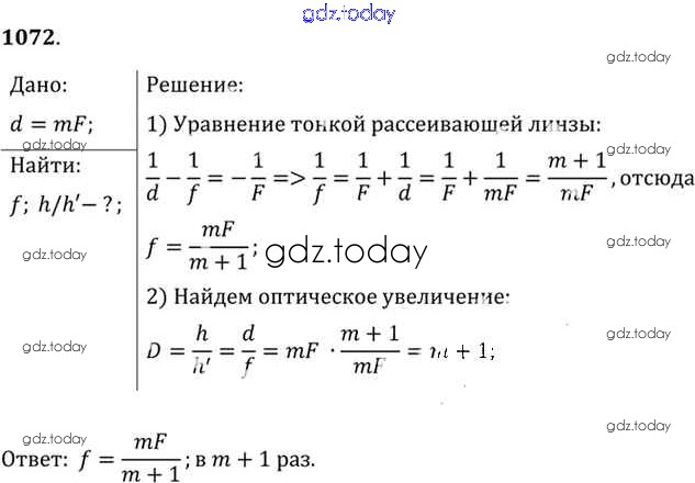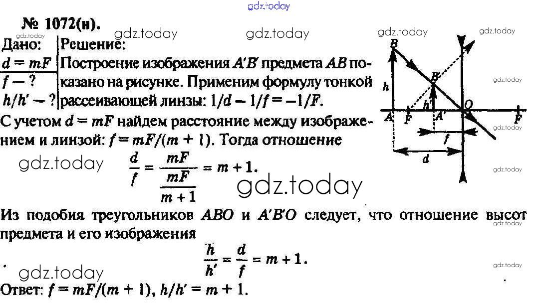 На страницах сайта gdz.today вы найдете учебный и вспомогательный материал, направленный на улучшения знаний школьной программы. ГДЗ - онлайн мир знаний Задачи 1072 Задачнику по Физике для 10-11 класса Рымкевич Дрофа УМК 2013