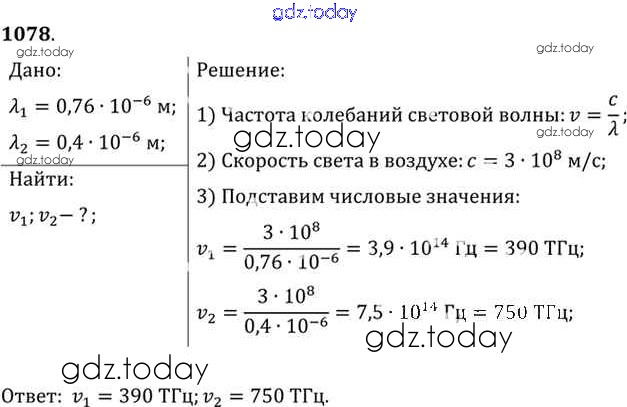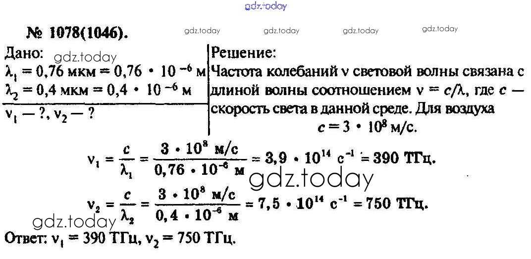 На страницах сайта gdz.today вы найдете учебный и вспомогательный материал, направленный на улучшения знаний школьной программы. ГДЗ - онлайн мир знаний Задачи 1078 Задачнику по Физике для 10-11 класса Рымкевич Дрофа УМК 2013