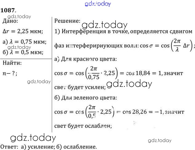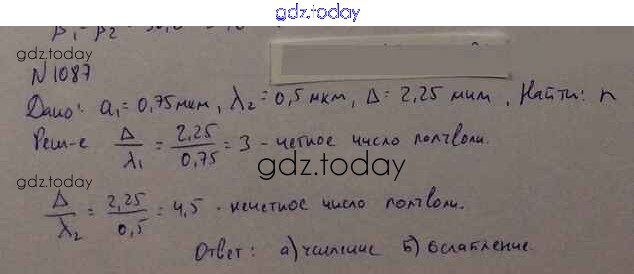 На страницах сайта gdz.today вы найдете учебный и вспомогательный материал, направленный на улучшения знаний школьной программы. ГДЗ - онлайн мир знаний Задачи 1087 Задачнику по Физике для 10-11 класса Рымкевич Дрофа УМК 2013
