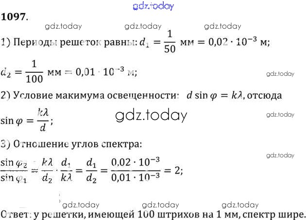 На страницах сайта gdz.today вы найдете учебный и вспомогательный материал, направленный на улучшения знаний школьной программы. ГДЗ - онлайн мир знаний Задачи 1097 Задачнику по Физике для 10-11 класса Рымкевич Дрофа УМК 2013
