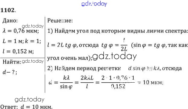 На страницах сайта gdz.today вы найдете учебный и вспомогательный материал, направленный на улучшения знаний школьной программы. ГДЗ - онлайн мир знаний Задачи 1102 Задачнику по Физике для 10-11 класса Рымкевич Дрофа УМК 2013