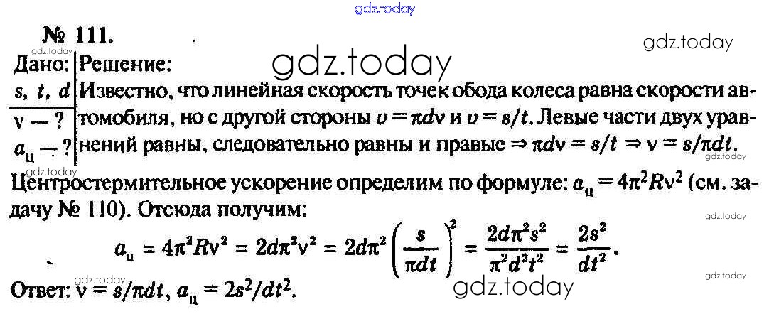 На страницах сайта gdz.today вы найдете учебный и вспомогательный материал, направленный на улучшения знаний школьной программы. ГДЗ - онлайн мир знаний Задачи 111 Задачнику по Физике для 10-11 класса Рымкевич Дрофа УМК 2013