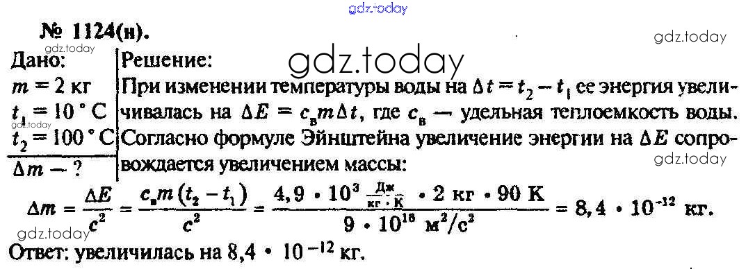 На страницах сайта gdz.today вы найдете учебный и вспомогательный материал, направленный на улучшения знаний школьной программы. ГДЗ - онлайн мир знаний Задачи 1124 Задачнику по Физике для 10-11 класса Рымкевич Дрофа УМК 2013
