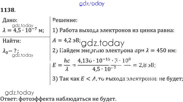 На страницах сайта gdz.today вы найдете учебный и вспомогательный материал, направленный на улучшения знаний школьной программы. ГДЗ - онлайн мир знаний Задачи 1138 Задачнику по Физике для 10-11 класса Рымкевич Дрофа УМК 2013