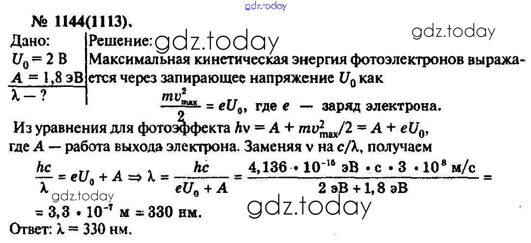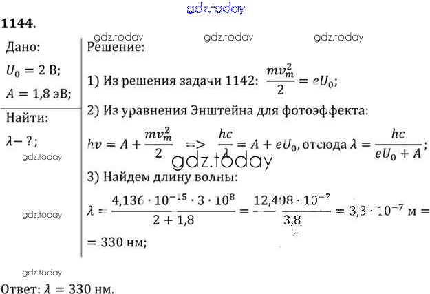 На страницах сайта gdz.today вы найдете учебный и вспомогательный материал, направленный на улучшения знаний школьной программы. ГДЗ - онлайн мир знаний Задачи 1144 Задачнику по Физике для 10-11 класса Рымкевич Дрофа УМК 2013