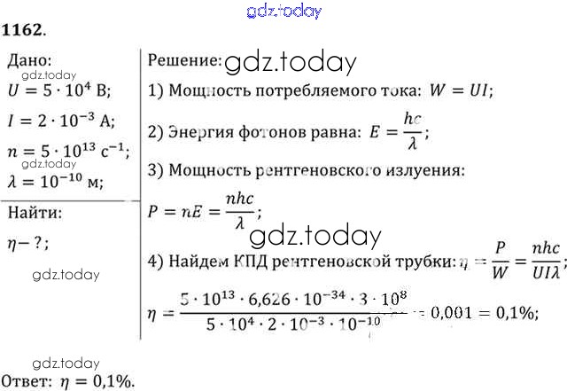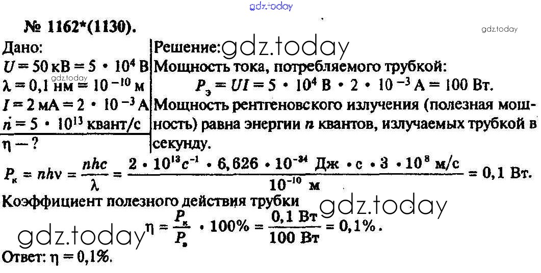 На страницах сайта gdz.today вы найдете учебный и вспомогательный материал, направленный на улучшения знаний школьной программы. ГДЗ - онлайн мир знаний Задачи 1162 Задачнику по Физике для 10-11 класса Рымкевич Дрофа УМК 2013