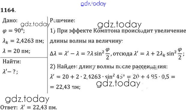 На страницах сайта gdz.today вы найдете учебный и вспомогательный материал, направленный на улучшения знаний школьной программы. ГДЗ - онлайн мир знаний Задачи 1164 Задачнику по Физике для 10-11 класса Рымкевич Дрофа УМК 2013