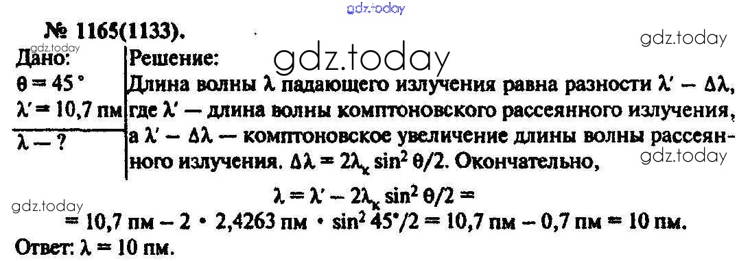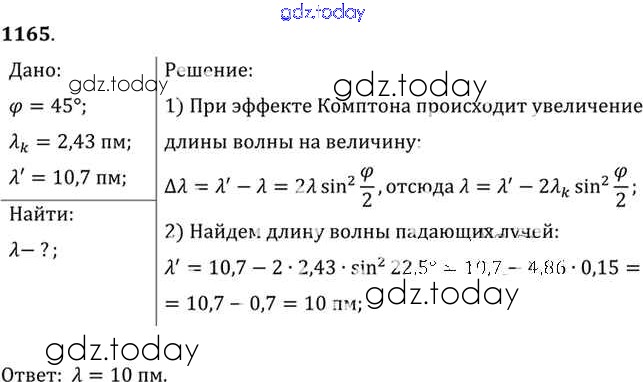 На страницах сайта gdz.today вы найдете учебный и вспомогательный материал, направленный на улучшения знаний школьной программы. ГДЗ - онлайн мир знаний Задачи 1165 Задачнику по Физике для 10-11 класса Рымкевич Дрофа УМК 2013