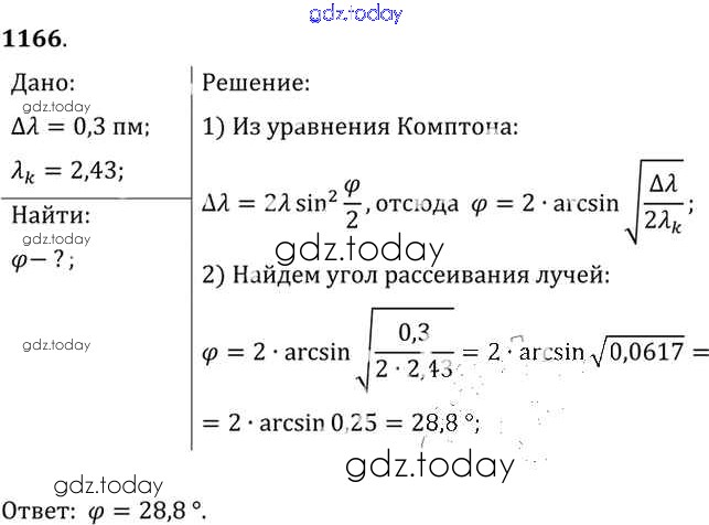 На страницах сайта gdz.today вы найдете учебный и вспомогательный материал, направленный на улучшения знаний школьной программы. ГДЗ - онлайн мир знаний Задачи 1166 Задачнику по Физике для 10-11 класса Рымкевич Дрофа УМК 2013